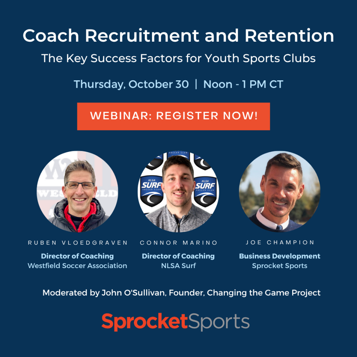 Coaches are the backbone of every successful youth sports organization. Join us on Thursday, October 20 at Noon – 1:00 CT to discuss the key factors in hiring, developing and retaining top coaches so that your club can flourish.