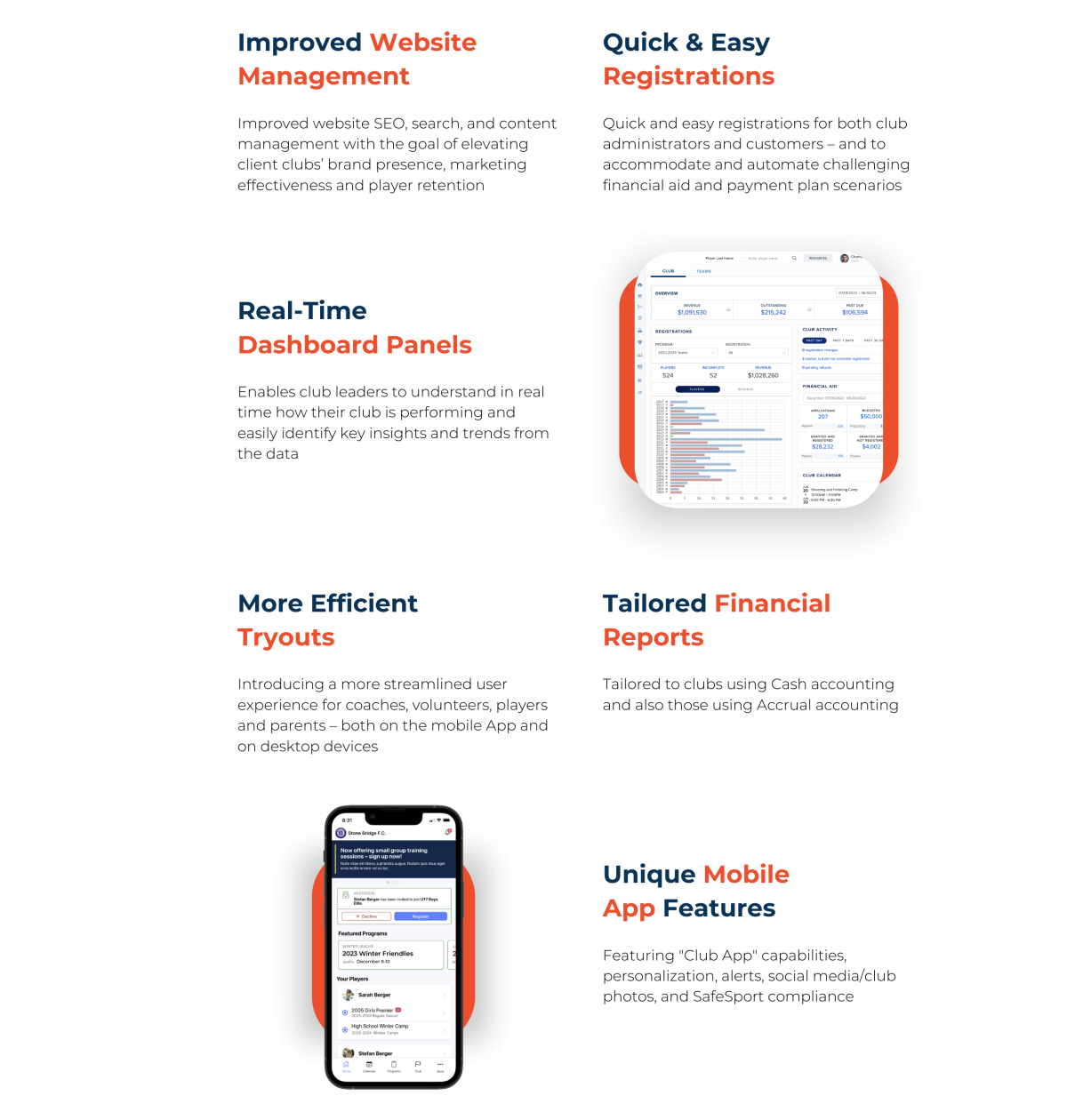 Our platform was created by leaders who have experience running youth sports clubs and building software for Fortune 500 companies. We know what tools you need to save time and money and we know how to build them.
