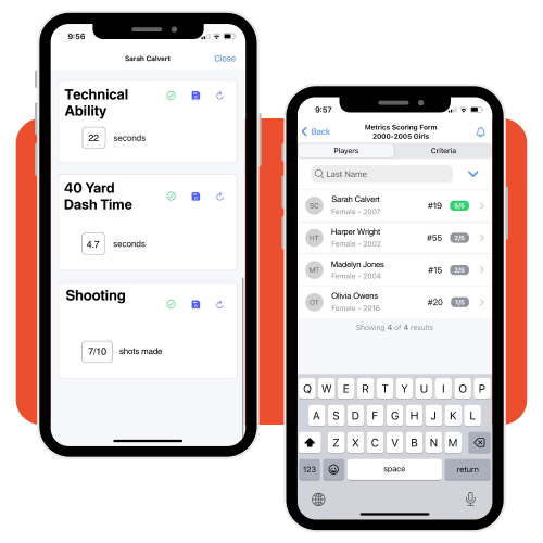 Enables coaches and clubs to track key player metrics ranging from skill ratings (e.g., on a scale of 1-5) to quantitative measurements (e.g., vertical jump)
