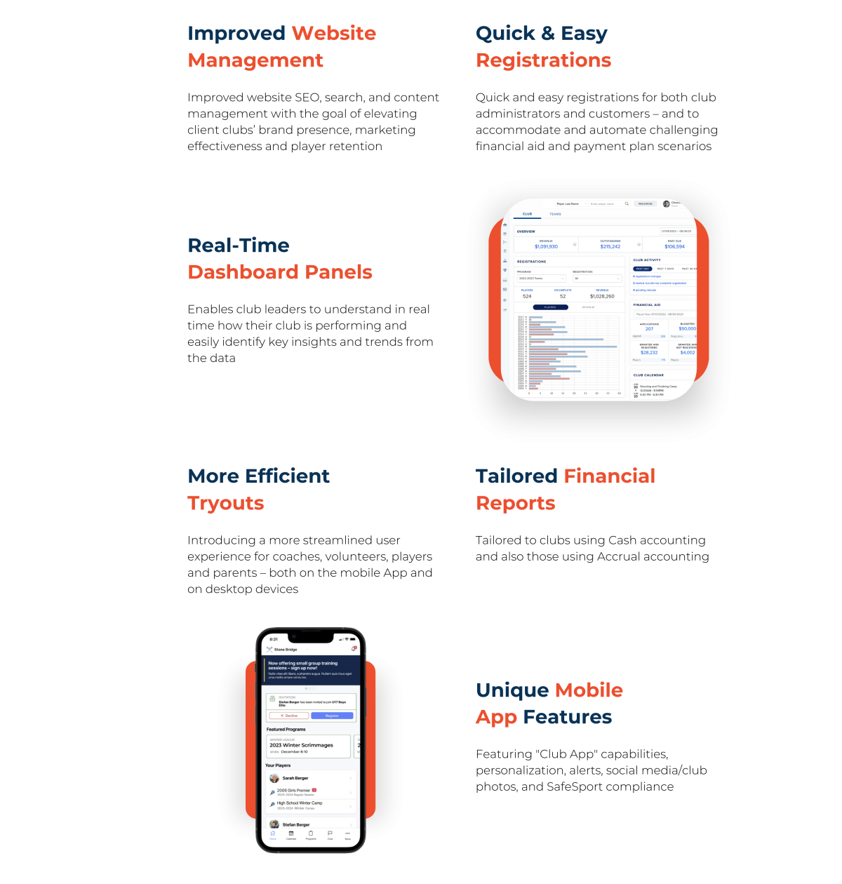 Our platform was created by leaders who have experience running youth sports clubs and building software for Fortune 500 companies. We know what tools you need to save time and money and we know how to build them.